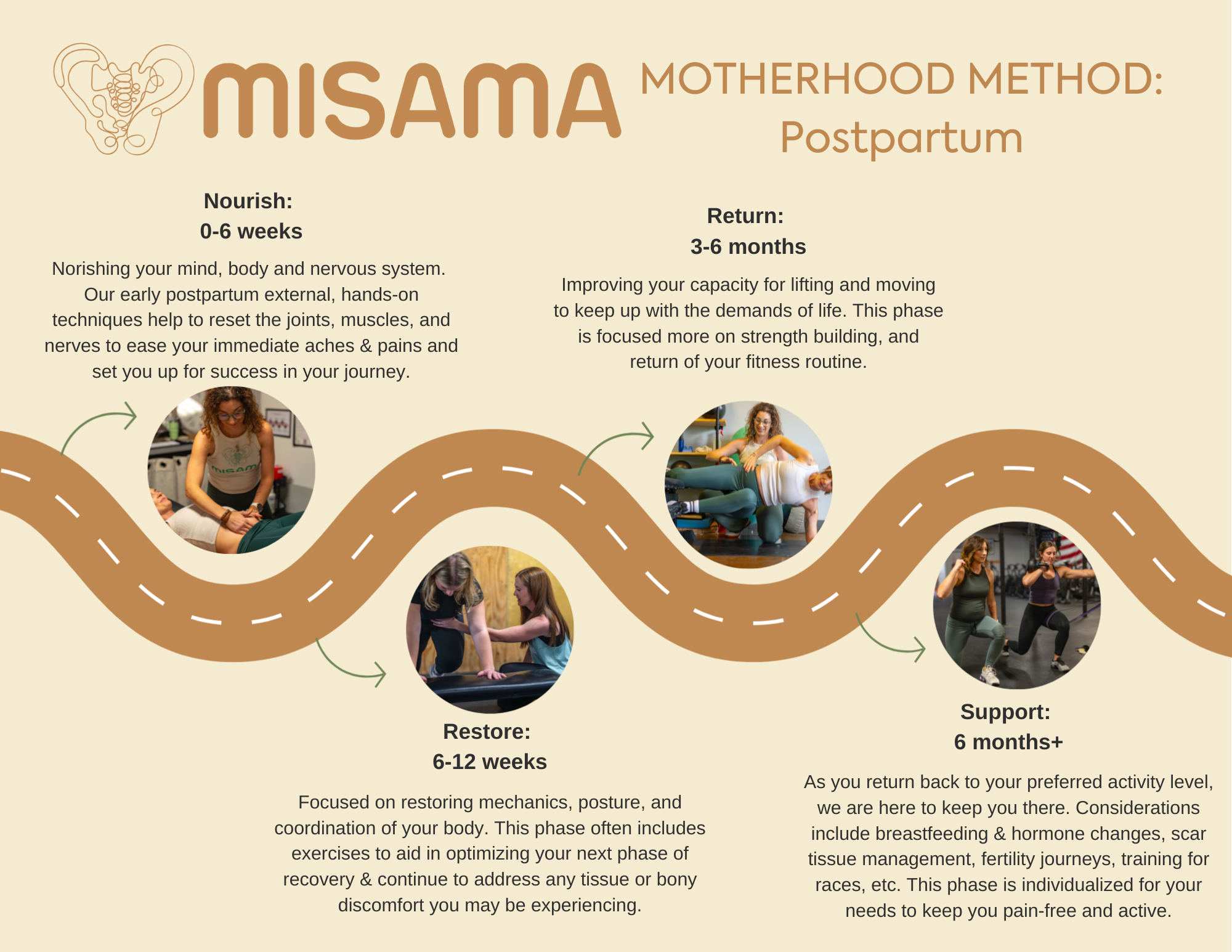 At Misama, we find the pre and postnatal periods to be crucial opportunities to invest in your physical health. We find that many women are under the impression that this season of life is ‘supposed’ to be painful. We know this is not true both through updated research and our standard of care. Our pregnancy and postpartum care include a combination of education, hands-on treatment techniques, and a comprehensive exercise program. We strongly believe in proactive care in the pre and postnatal periods—whether that includes labor & delivery prep, postpartum return to run screening, or a fitness program to improve abdominal strength in pregnancy & beyond.